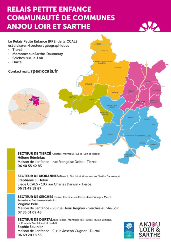 Le RPE CCALS est présent sur quatre secteurs du territoire de la Communauté de communes Anjou Loir Sarthe :